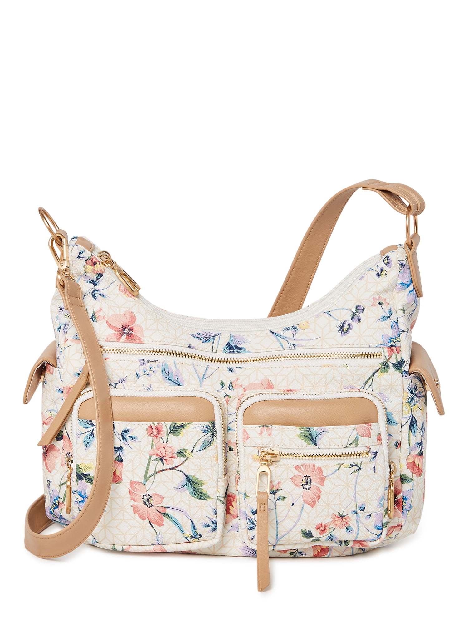 Time And Tru Women S Multi Compartment Faye Hobo Bag Floral Print Walmart Com